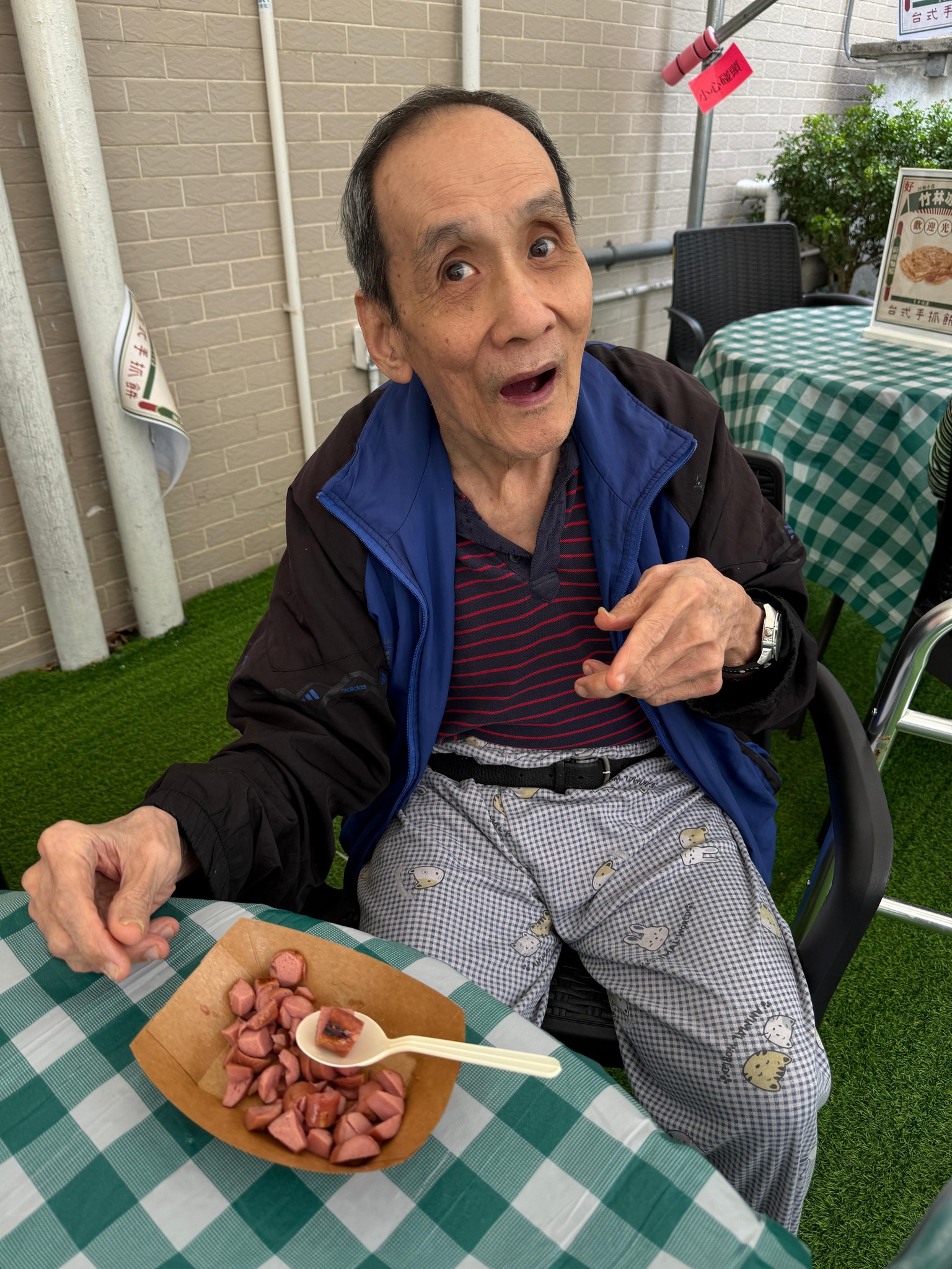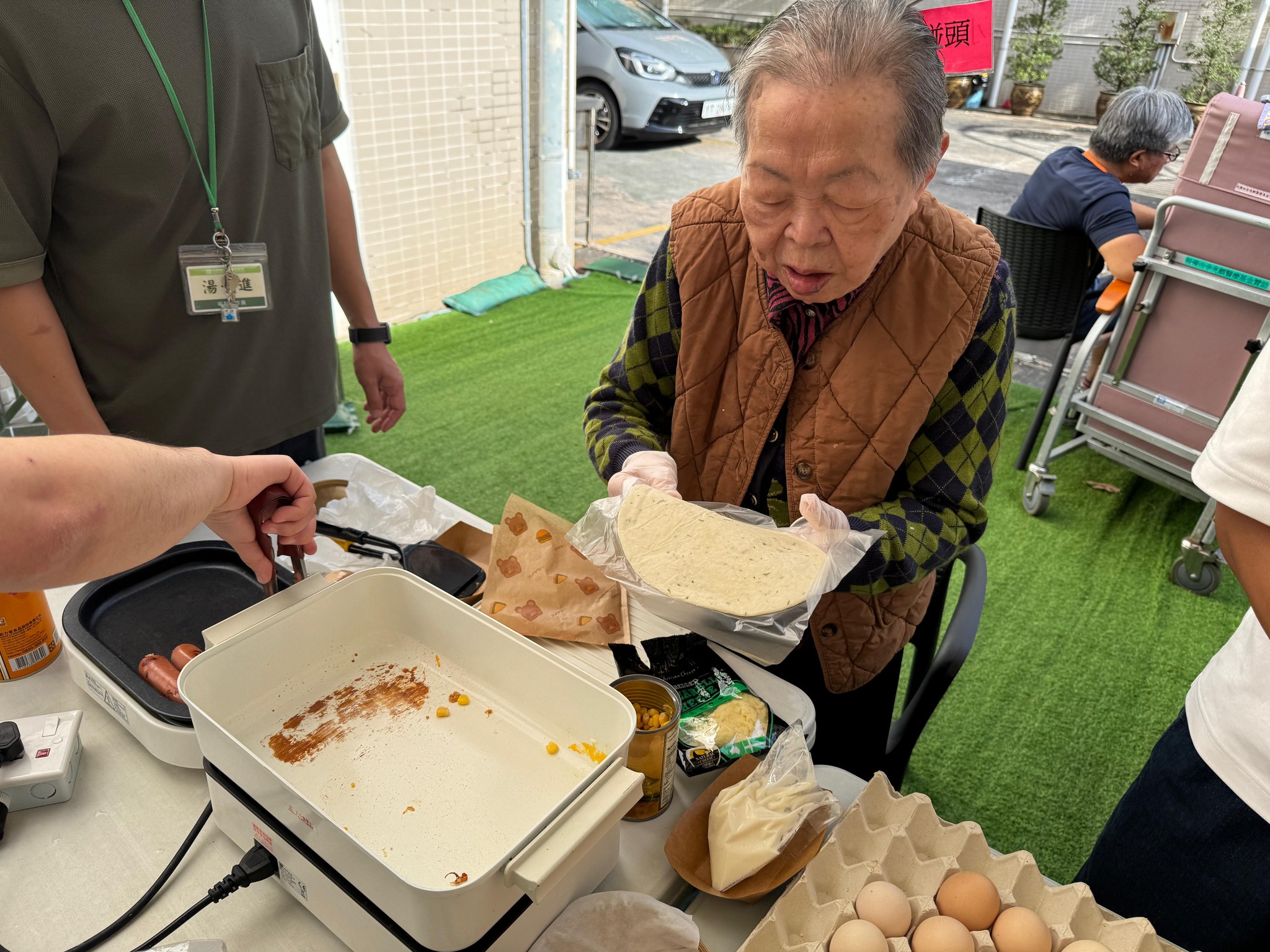 【竹林茶座】踏入秋天,除了是到花園吹吹涼風的好時節之外,當然少不了與長輩齊齊嘆台灣特色小食啦 今次我們邀請長輩化身成竹林廚師炮製手抓餅,長輩先把手抓餅煎香,再加入雞蛋、芝士、粟米和肉鬆,香噴噴的手抓餅就完成喇 另外,我們更配上台式香腸,長輩們都大讚手抓餅既酥脆又豐富,而台式香腸美味多汁,簡直大飽口福呀