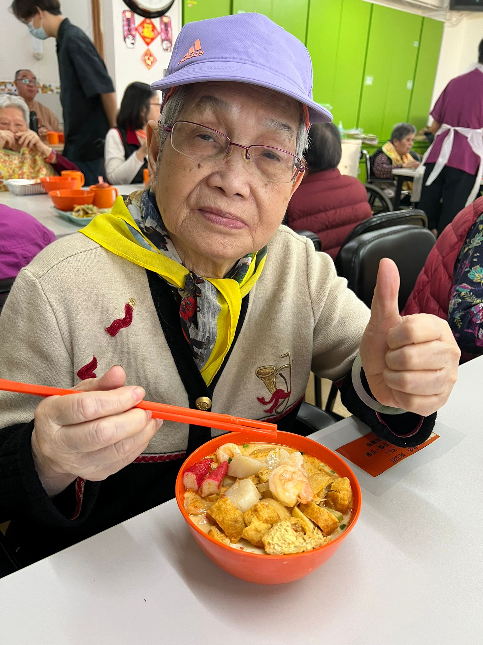 本院每月會有一次讓長輩自行選餐的安排,是次廚師們為長輩精心炮製一個又一個色、香、味俱全的海南雞飯和海鮮喇沙 海鮮喇沙材料豐富包括大蝦、帶子、蟹柳,再加上惹味湯底,無得彈呀 除此之外,海南雞飯的雞肉鮮嫩多汁,再配上油飯,長輩個個都大舉姆指讚有水準,賣相和味道都可與外面的餐廳媲美,每個月可以既品嚐不同的特色美食,又可以揀選喜歡的餐膳,簡直大飽口福