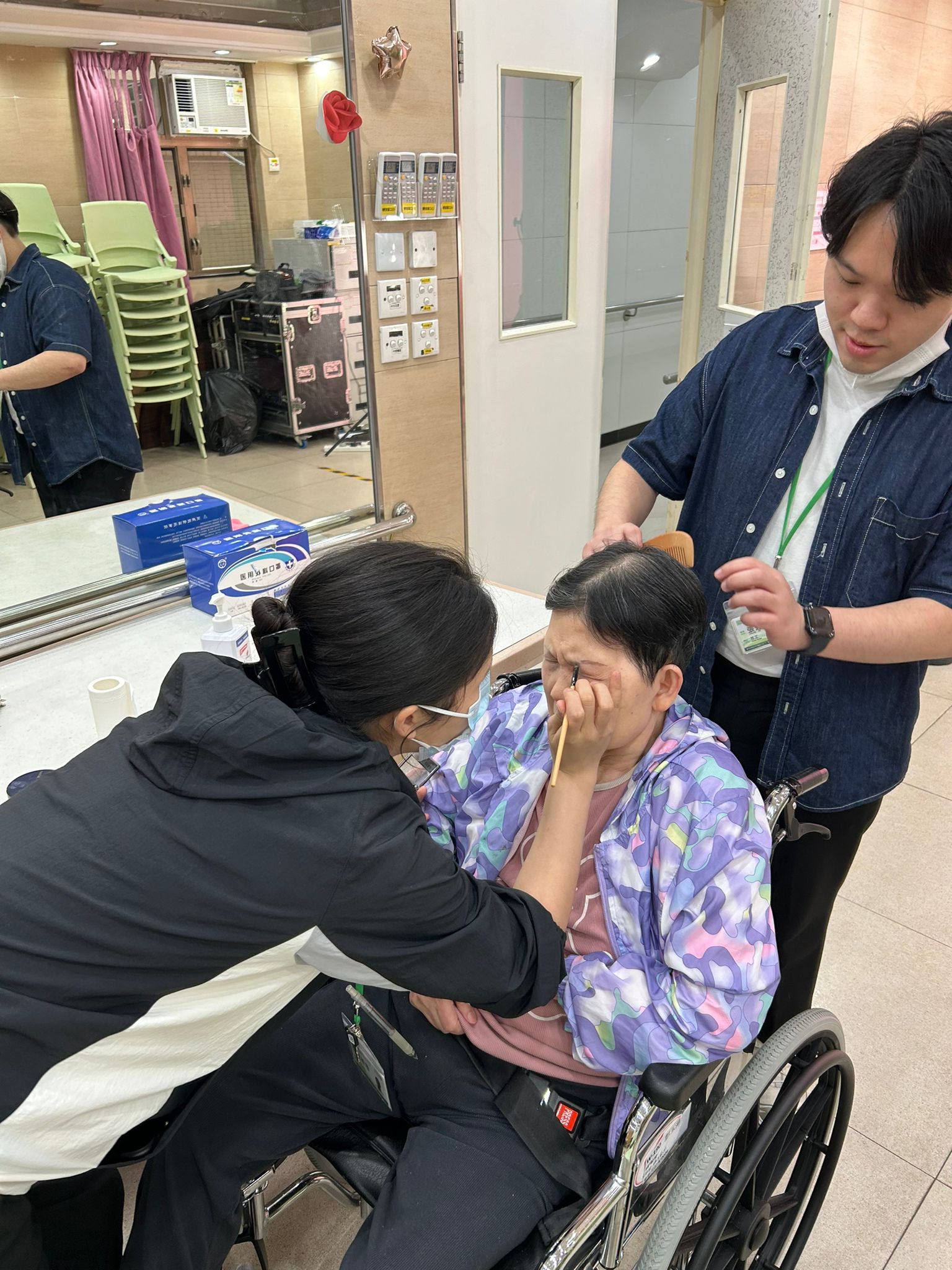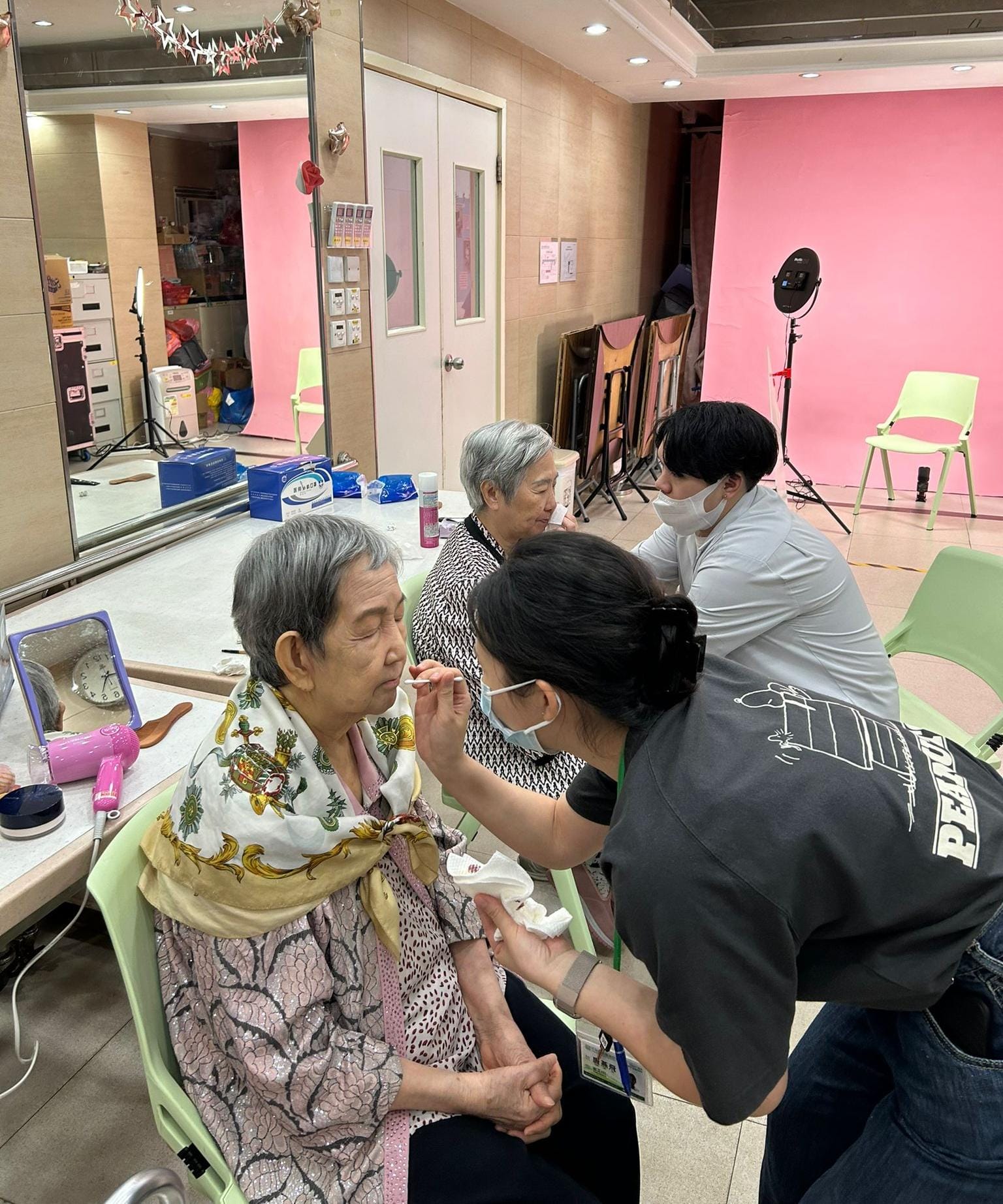 本院於近月設置流動影樓讓長輩拍下「靚」相,端莊且寬容的照片背後有賴團隊各司其職,有的為影樓配置好燈光、反光板及底紙,有的為長輩執整儀容並化靚妝,有的協助長輩整理髮型,有的協助長輩揀靚衫,個個望到鏡中自己的模樣都笑容滿面最後,職員為長輩拍攝照片,期間不忘逗長輩笑,一張又一張「靚」便大功告成了