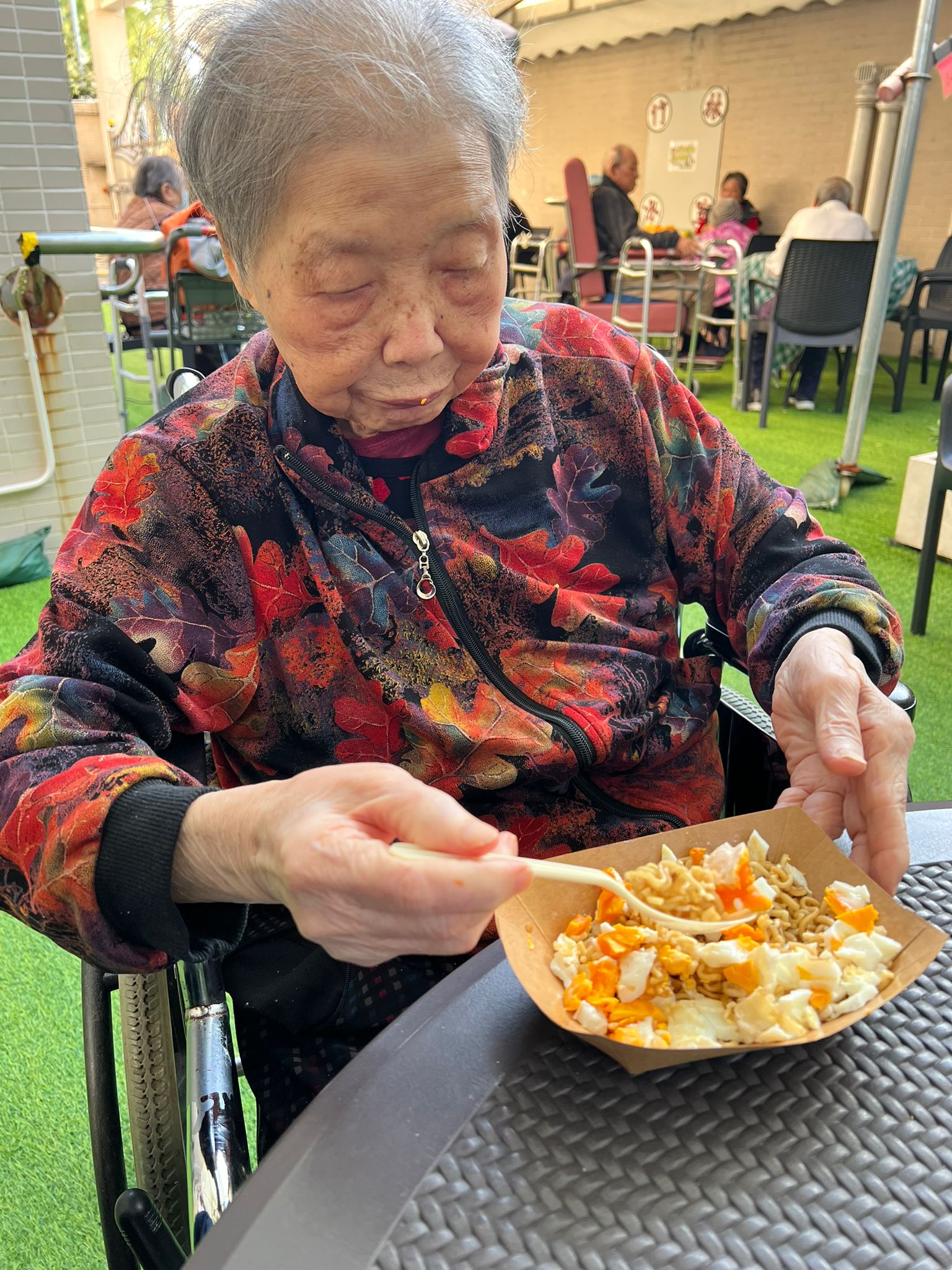 【竹林茶座】早前搭入秋天,我們藉此與長輩到花園感受秋風、曬曬太陽,更與長輩齊齊嘆特色小食 今次我們邀請長輩化身成竹林廚師炮製印尼撈麵,長輩先把麵煮好撈起備用,再加入醬料將其拌勻,最後配上太陽蛋,香噴噴的印尼撈麵就大公告成喇 個個都大讚印尼撈麵及太陽蛋香濃可口,無得頂呀