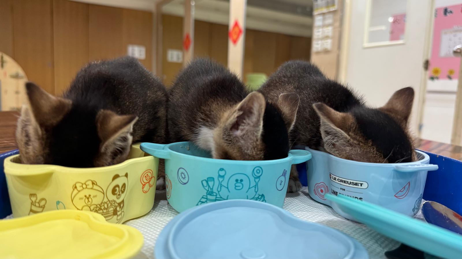「大家好,我地係林林、明明、堂堂,上個月啱啱加入竹林明堂嘅大家庭,多多指教」 相信不少長輩及家人到訪時都留意到院舍接待處大堂增添了三位新成員,這三隻貓貓是我們於3月6日在後花園拯救回來的,由於發現牠們時正在下大雨☔,牠們已經被淋到奄奄一息,所以我們馬上為貓貓吹乾毛髮、用毛巾保暖、餵奶及預約動物醫生檢查。本院職員眾志成城,出錢出力,共同助養三隻初生小貓貓???? 動物醫生於3月8日到診為貓貓檢查身體、處方藥物醫治感冒及杜蟲杜蝨,期間我們安排臨時屋讓牠們暫住,於3月底貓貓的感冒已康復,且可以自行進食,貓貓更於3月31日入伙大堂的新居。 貓貓會於5月注射3支防疫針,完成後可以正式上樓層探望長輩、到花園與長輩一起曬太陽、陪伴長輩參與活動、更可以………,諗起都好開心,好期待,到時再同大家更新貓貓動態