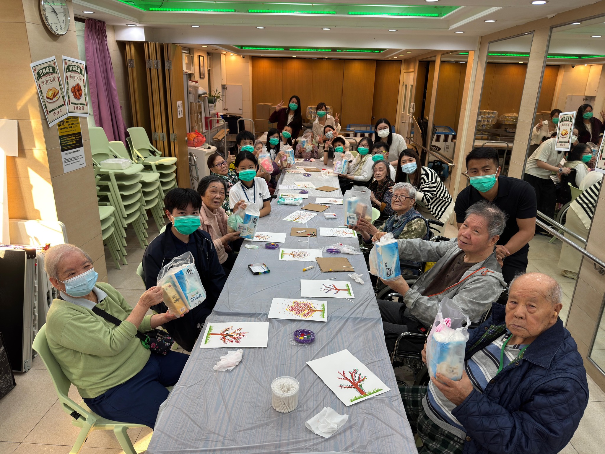 本院於上星期三與弘立書院合作舉辦一個有助跨代共融的活動,是次鳴謝弘立書院的初中學生義工用心預備並與長輩大玩不同的活動,首先與長輩玩音樂運球遊戲,並與長輩進行問答環節接着,學生與長輩製作棉籤畫,長輩拿着棉花棒挑選喜愛的顏色,在印有樹幹的畫紙上一點一點的畫上樹葉和花兒,每位長輩的畫作都各具特色,充滿創意 活動過程中,不但可刺激長輩的手眼協調、肢體能力及創作能力????,長輩更可與學生一起享受遊玩的樂趣,加強彼此的互動及交流,促進長幼共融最後,學生向每位長輩送上親手準備的小禮物,長輩接過禮物後都開心無比