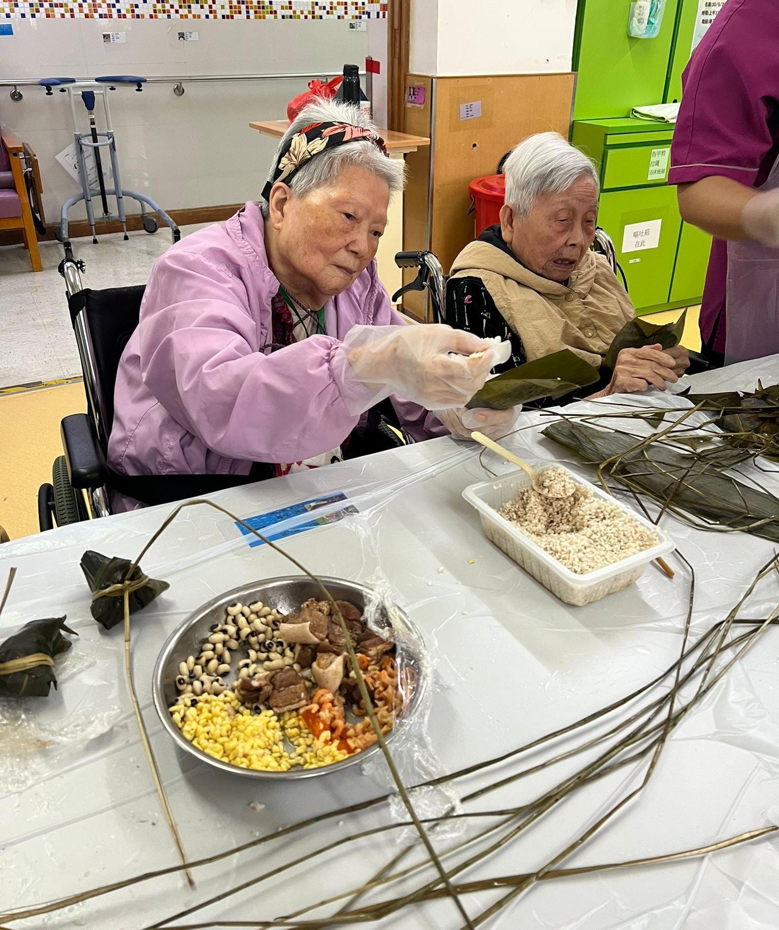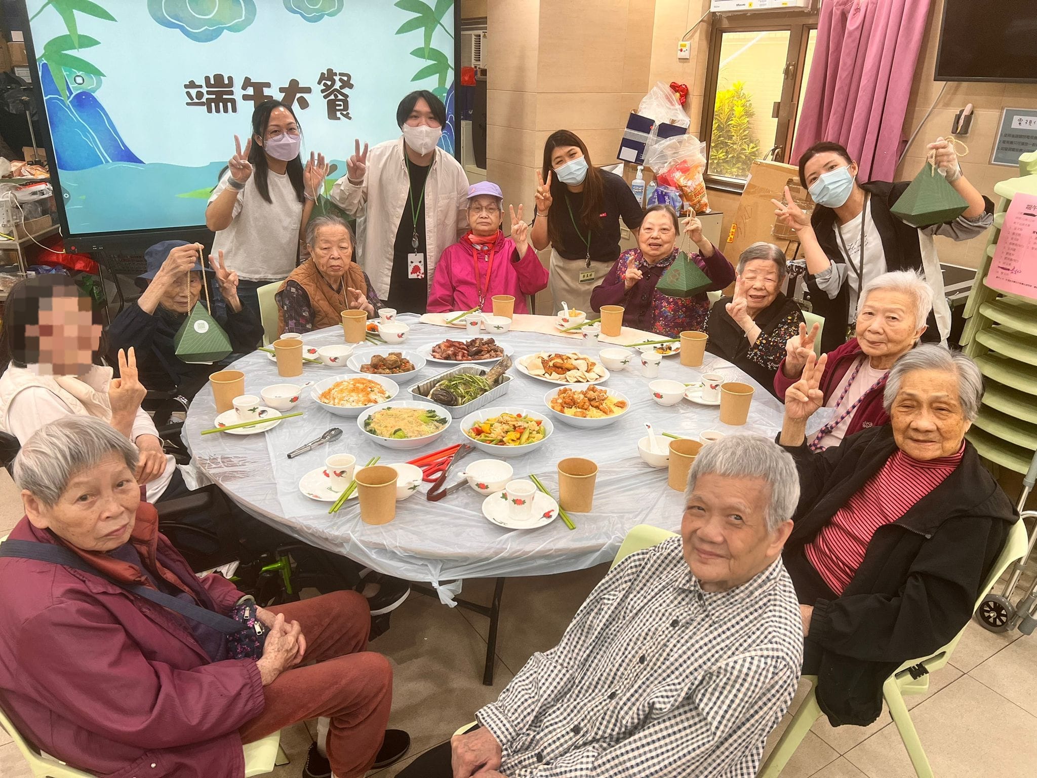 端午臨門平安至,歲月無憂福壽長 適逢端午節,本院於上星期邀請長輩化身竹林廚師親手包咸肉糭和鹼水糉應節,長輩見到桌上豐富的材料,便馬上拿起糉葉,順序放入糯米、綠豆、眉豆、豬肉、咸蛋及蝦米,而包鹼水糉的長輩則放入紅豆蓉,最後用咸水草將糉子包好,長輩看到桌上滿載包好的糉子,臉上都掛滿幸福的笑容 除了包端午糉之外,本院更於上星期五安排長輩共進端午大餐 今年大餐菜式包羅萬有,有香脆琵琶豆腐、燒味拼盤、有大蝦伊麵、有雞又有魚,再配上鮮甜湯品,長輩們一邊食一邊大讚「好味」本院亦為吞嚥困難的長輩預備精緻軟餐,共同感受節日的氣氛及歡樂 願大家好運「粽」在身邊,幸福滿「舟」圍