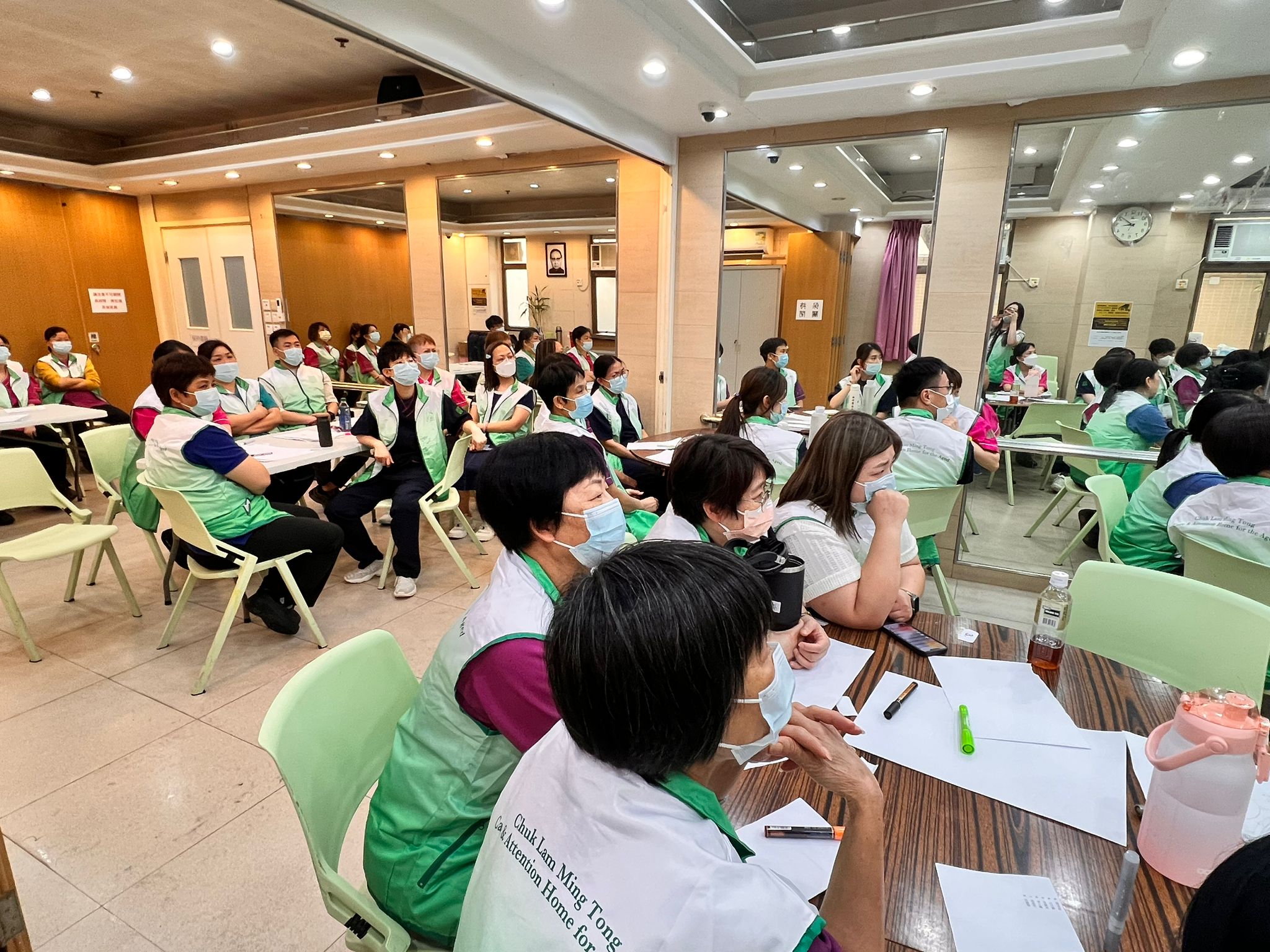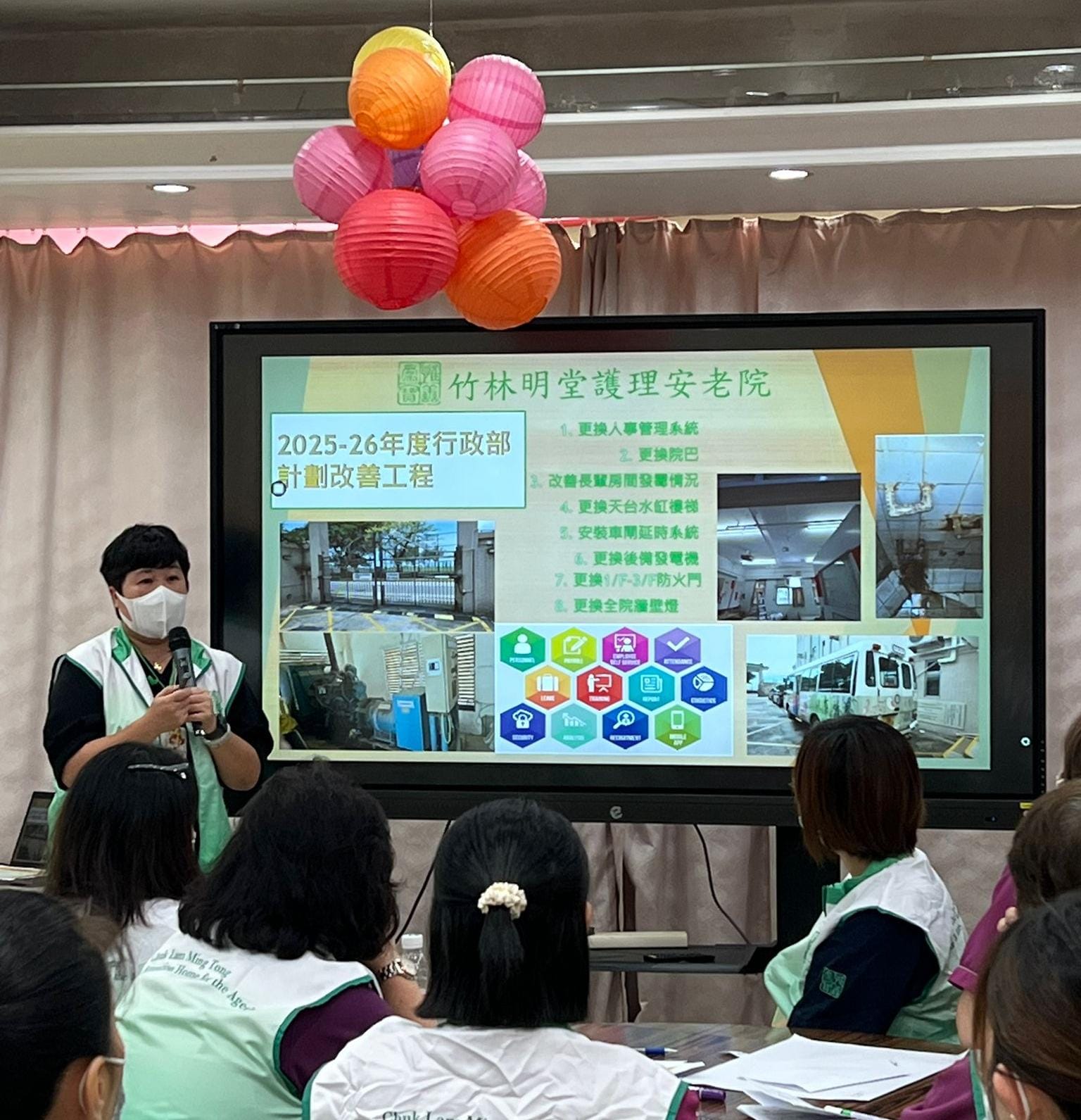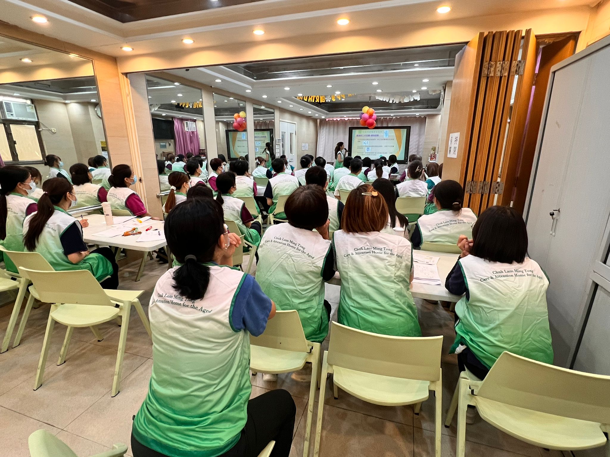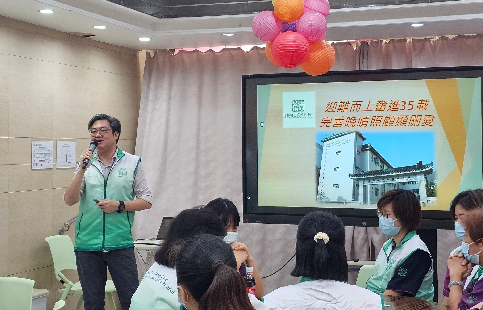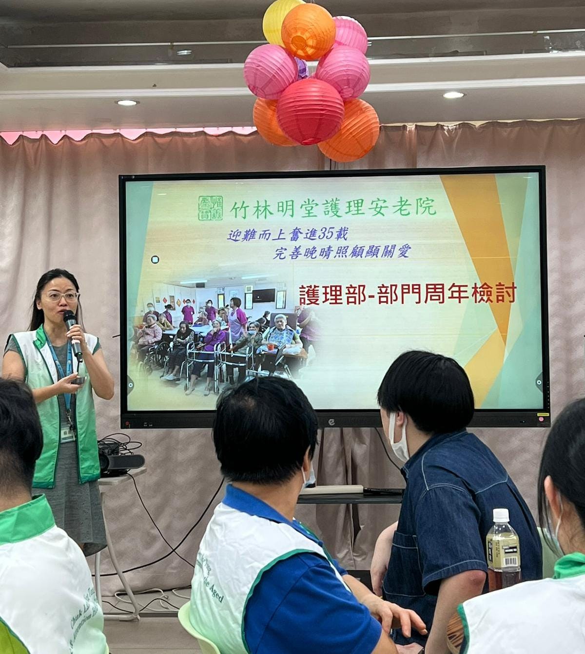 每年本院會就過去一年的照顧服務進行反思、檢討及規劃 最近院舍職員就聚首一堂,除了玩小遊戲外,各部門回顧過去一年的服務成果,職員亦積極反思所推行的照顧服務,探討長輩和職員所遇到的困難及需要同時,職員大膽提出不同建議,為來年晚晴照顧目標做更妥善的準備,以保持及提升長輩的晚年生活質素 本院會持續突破框框、與時俱進、迎難而上、回應長輩需要