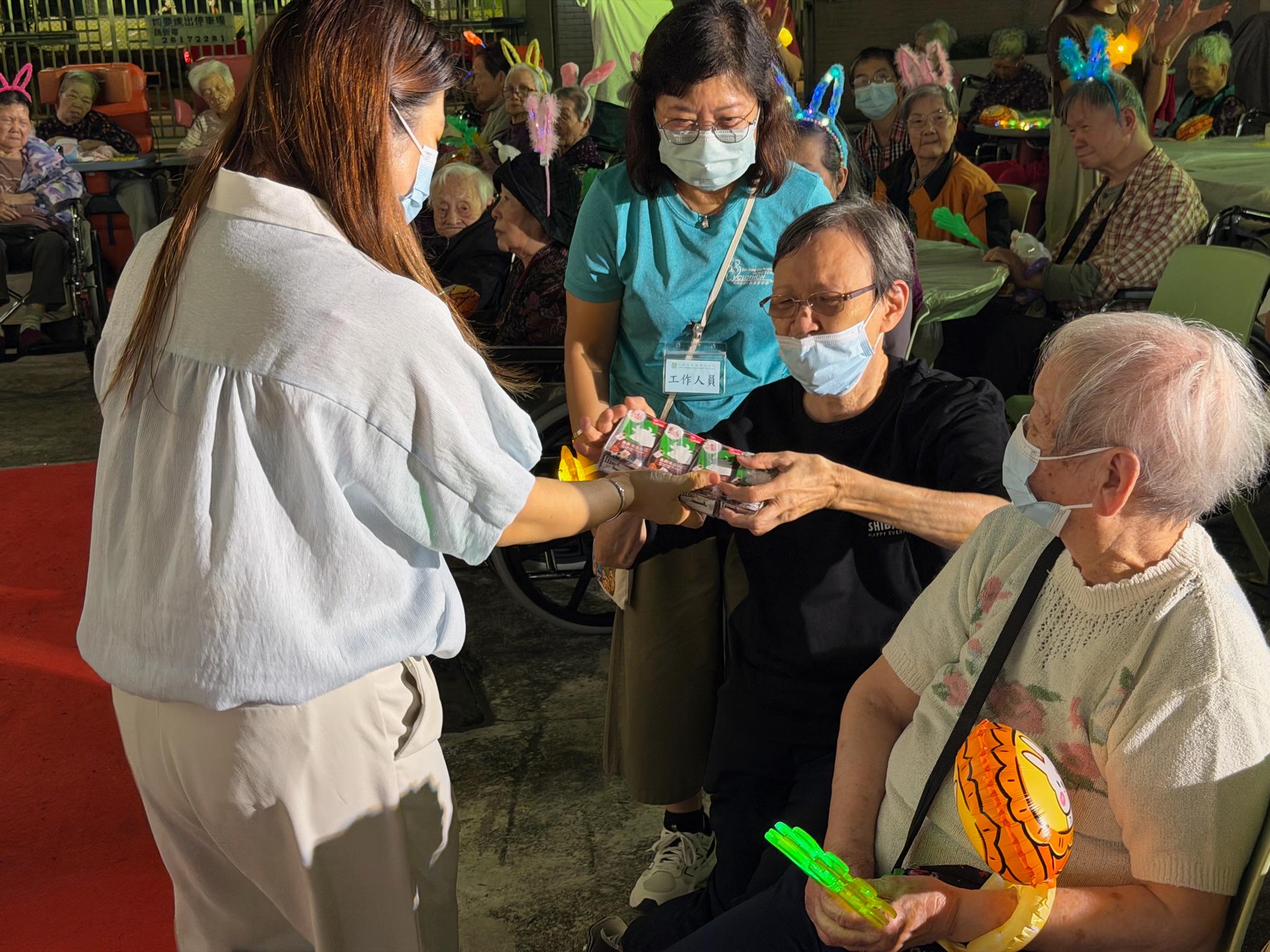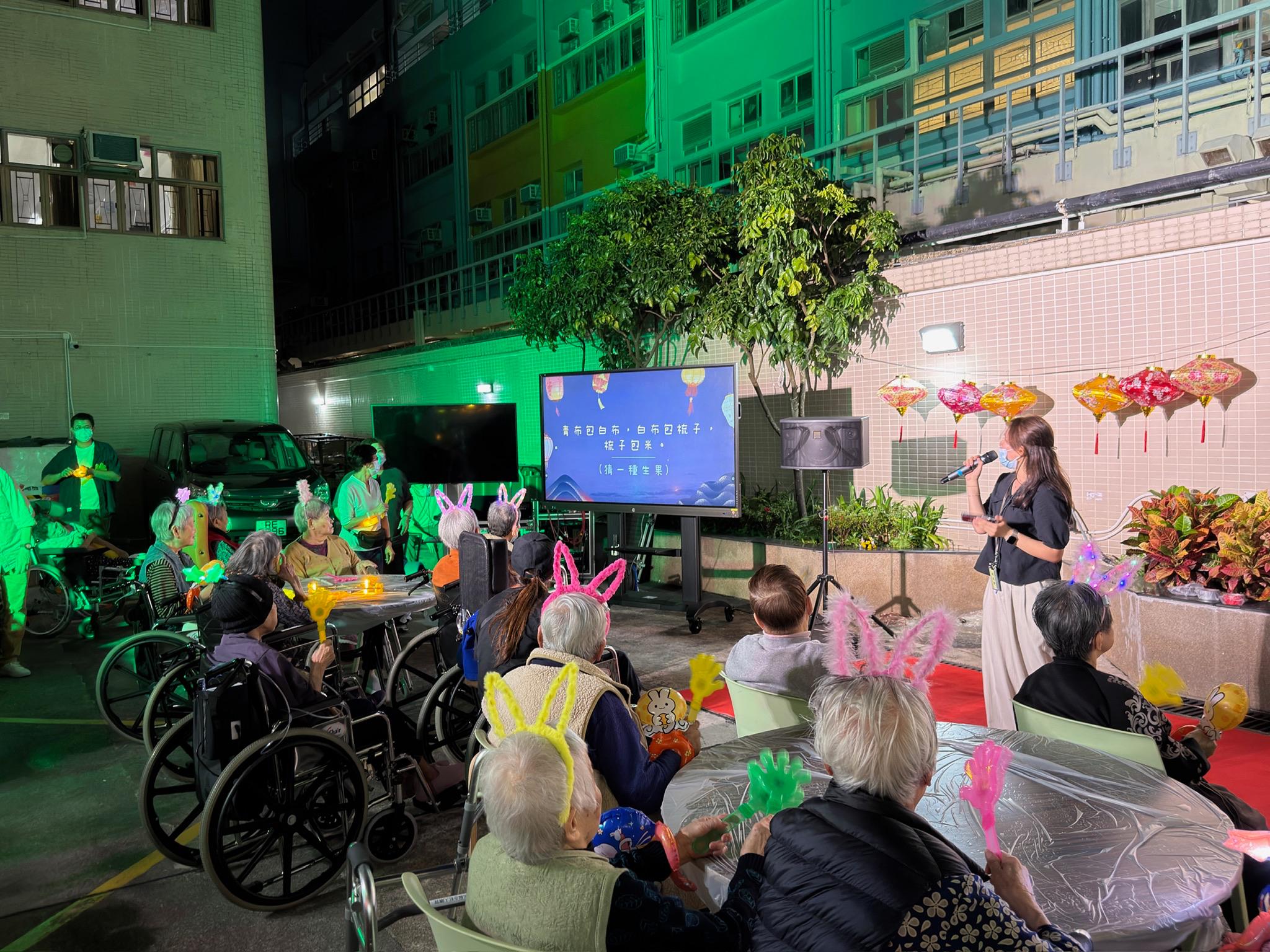 月到中秋分外明,節日喜氣伴你行適逢中秋佳節,本院於近日特意舉辦中秋晚會,我們先與長輩猜燈謎,再欣賞長輩與院長合唱經典金曲,更鳴謝義工團體「Music Chaser」為長輩精心籌備歌唱及樂器表演除此之外,是次活動有葵涌扶青社義工陪同長輩參與,並為長輩送上窩心禮物,長輩接過禮物後均露出滿意的笑容最後,中秋佳節當然少不得佳節小食如柚子、水晶梨、芋頭、還有月餅,長輩都大讚水果鮮甜可口,甚是盡興 本院在此祝福大家吉祥如意,中秋節快樂