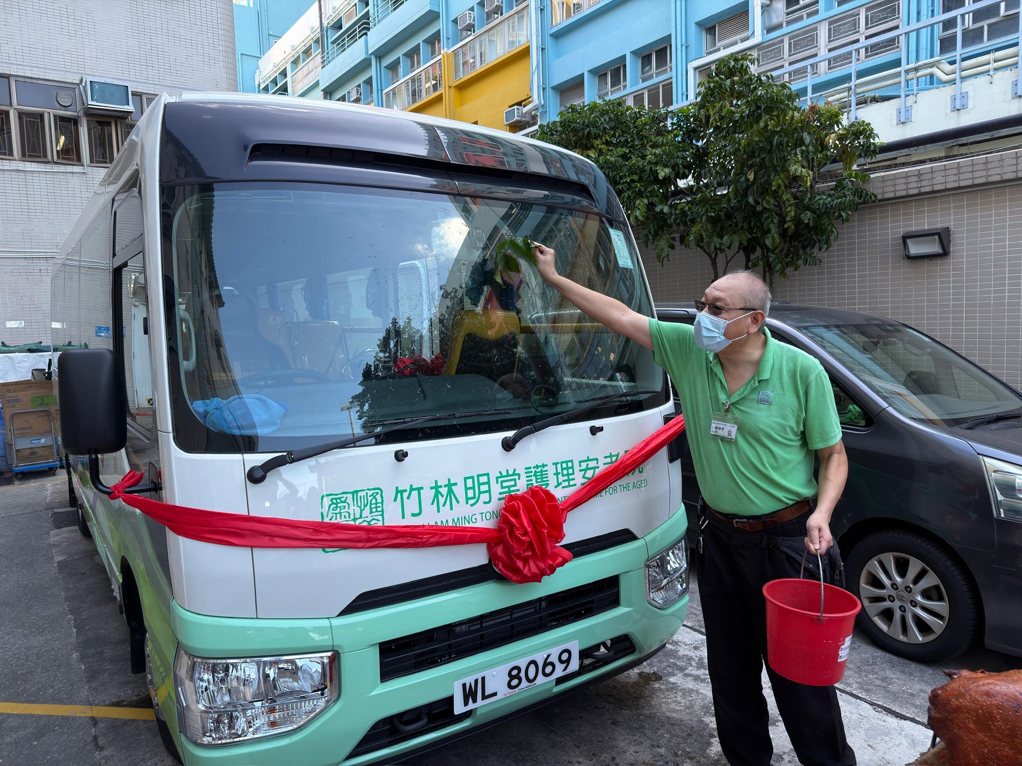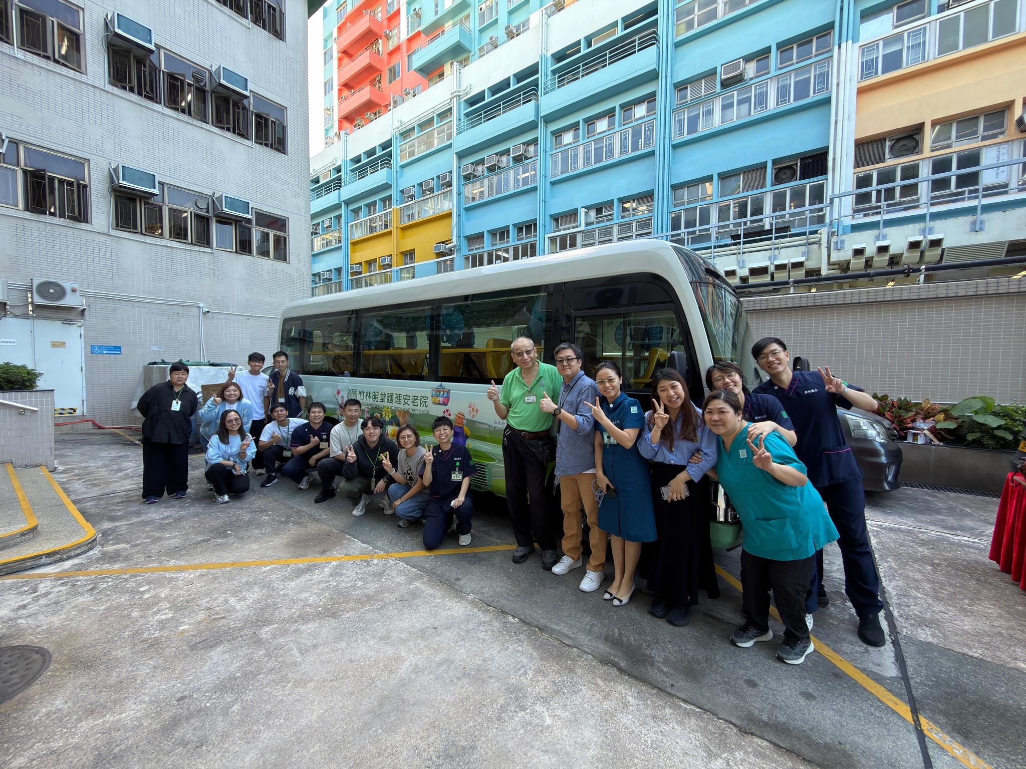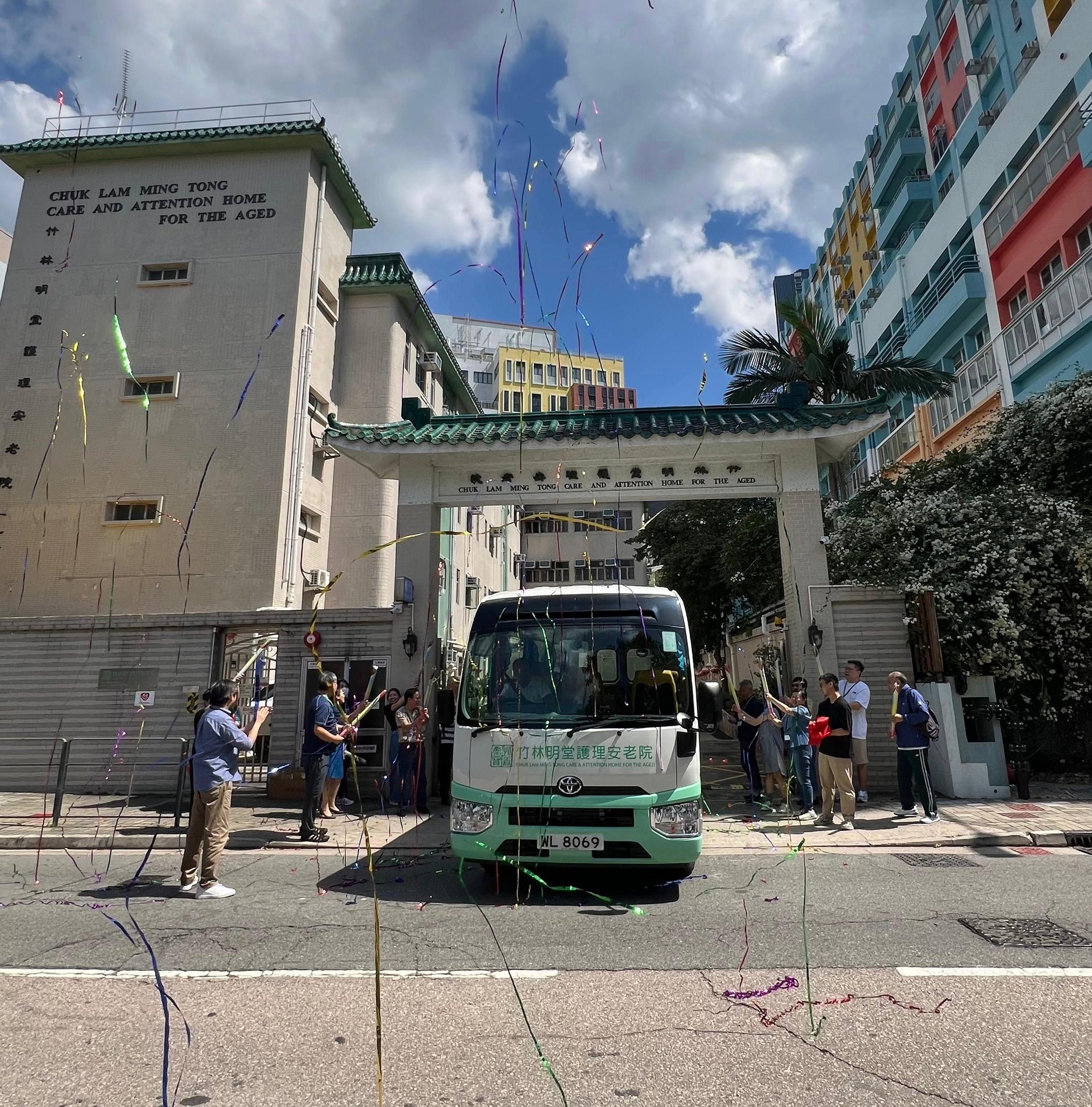 為提供長輩更舒適與安全的接送服務,本院於近月換上全新的院車,新院車車身重新設計,主題著重長輩與社區連結,積極晚年,務求令長輩踏入新院車有煥然一新的感覺 我地更舉行了新院車的開幕儀式,特別鳴謝管理委員會委員與職員共同出席見證這個重要時刻 儀式由剪綵環節揭開序幕,隨後響起熱鬧的花炮聲,寓意出入安全暢順 最後,大家齊集於新院車前拍攝大合照,紀念這個難忘時刻
