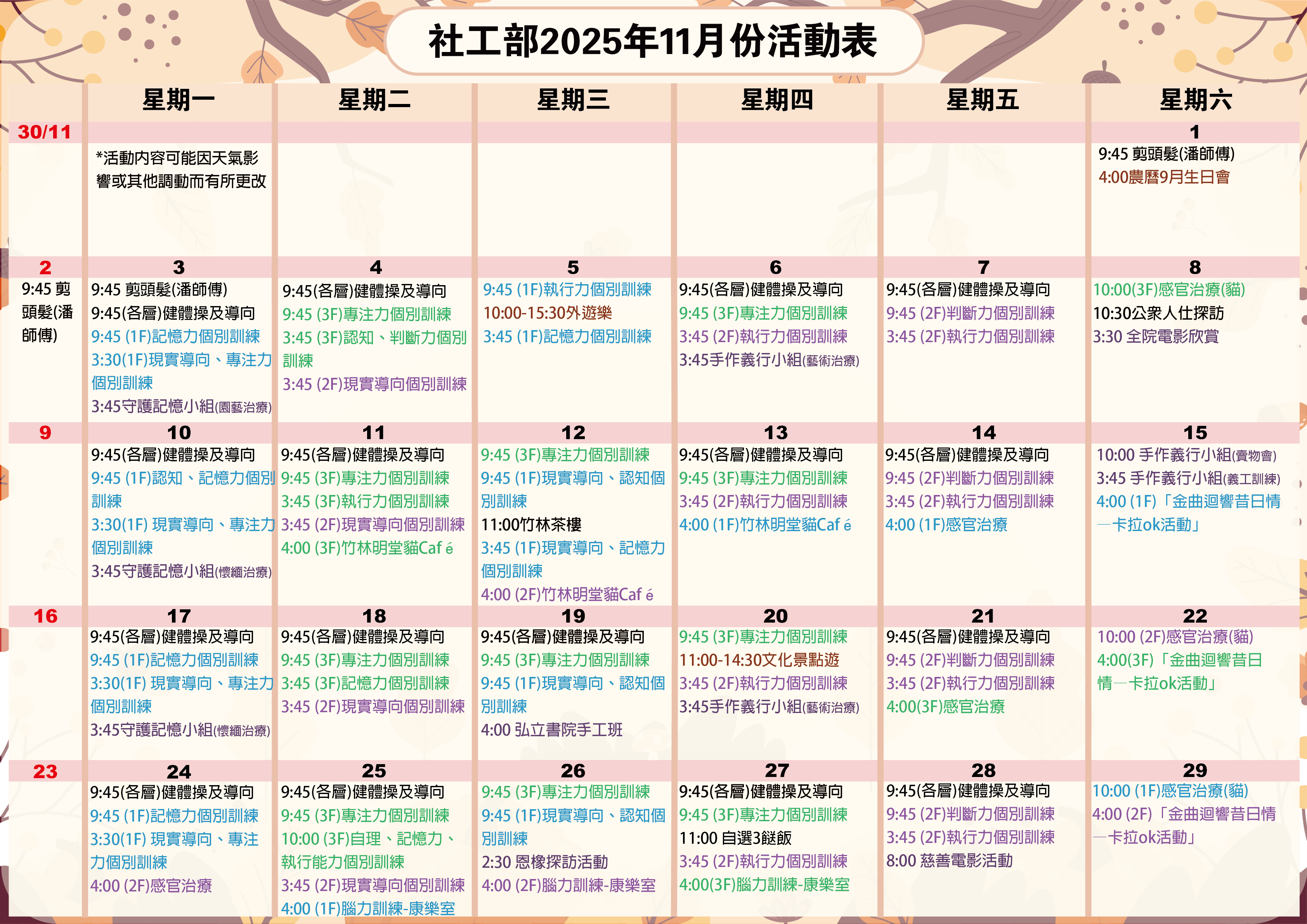 2025年11月活動表