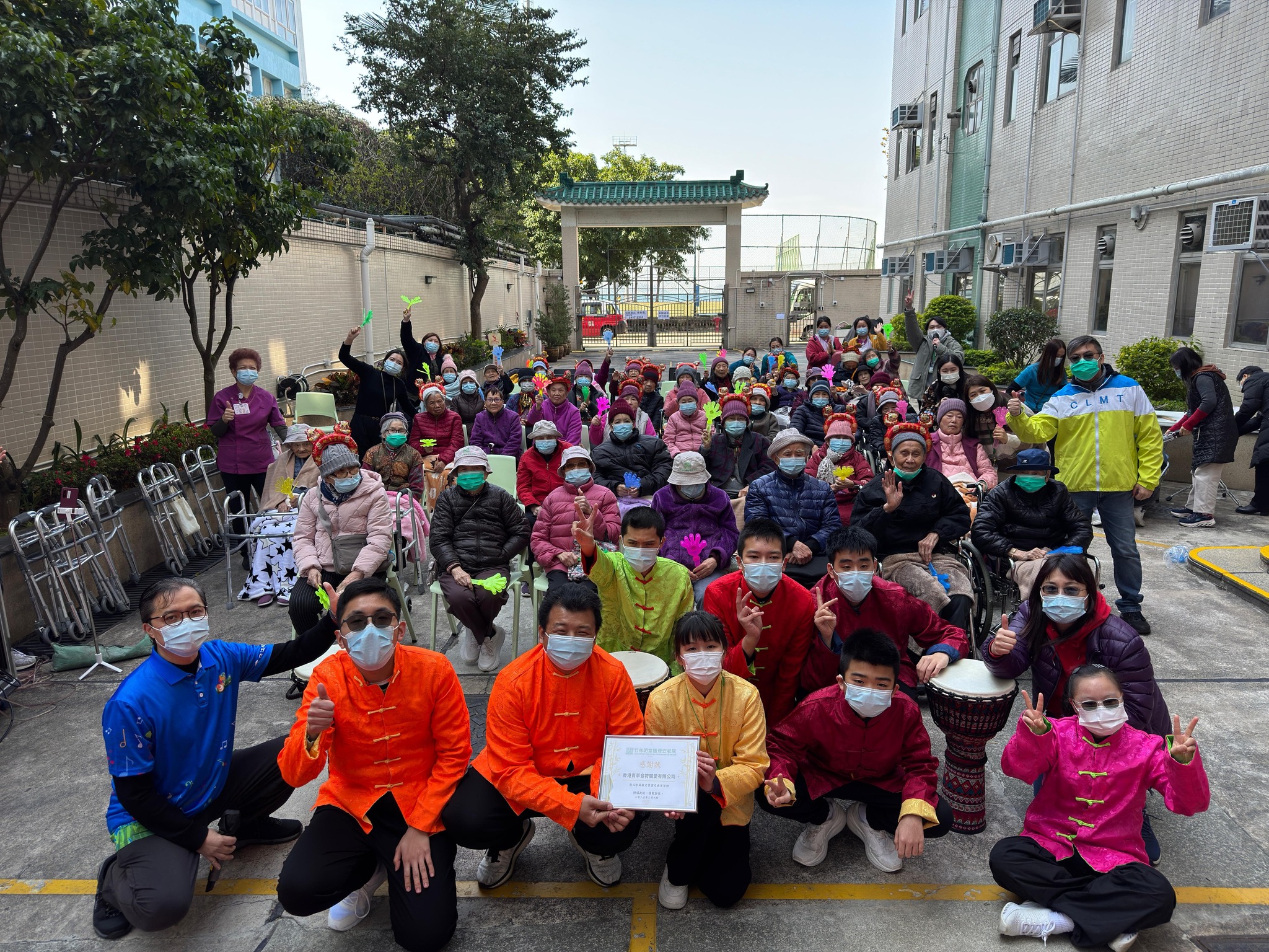 靈起舞驚天地,喜氣臨門慶豐年 為向各位長輩表達敬愛及祈福增壽之意,本院於上星期六安排長輩參與敬老齋宴今年敬老齋宴鳴謝華園華德福學校及青草音符精心預備的舞龍舞獅及環保敲擊樂表演,個個長輩都看得樂也融融 除了精彩的演出之外,今年的齋宴盆菜亦極盡心思,有齋鮑魚、齋蝦丸、齋粉葛扣肉、甜酸齋、大冬菇、長枝竹、蓮藕等豐富又美味的材料 活動進行期間,本院向年滿百歲的長輩頒發人瑞獎寓意長壽,更與長輩進行大抽獎,個個都玩到樂而忘返