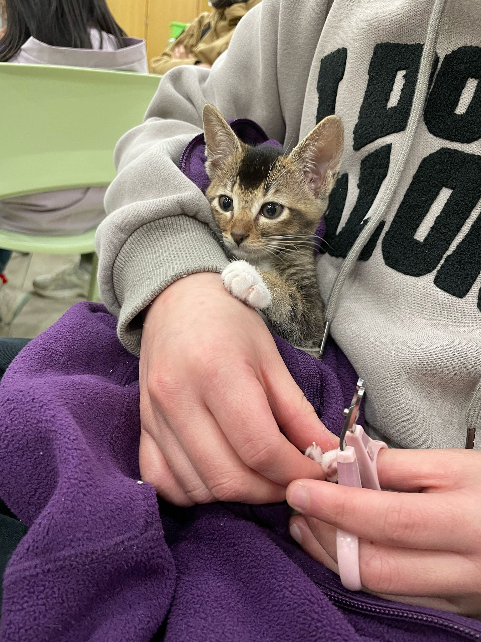「大家好,我地係林林、明明、堂堂,上個月啱啱加入竹林明堂嘅大家庭,多多指教」 相信不少長輩及家人到訪時都留意到院舍接待處大堂增添了三位新成員,這三隻貓貓是我們於3月6日在後花園拯救回來的,由於發現牠們時正在下大雨☔,牠們已經被淋到奄奄一息,所以我們馬上為貓貓吹乾毛髮、用毛巾保暖、餵奶及預約動物醫生檢查。本院職員眾志成城,出錢出力,共同助養三隻初生小貓貓???? 動物醫生於3月8日到診為貓貓檢查身體、處方藥物醫治感冒及杜蟲杜蝨,期間我們安排臨時屋讓牠們暫住,於3月底貓貓的感冒已康復,且可以自行進食,貓貓更於3月31日入伙大堂的新居。 貓貓會於5月注射3支防疫針,完成後可以正式上樓層探望長輩、到花園與長輩一起曬太陽、陪伴長輩參與活動、更可以………,諗起都好開心,好期待,到時再同大家更新貓貓動態