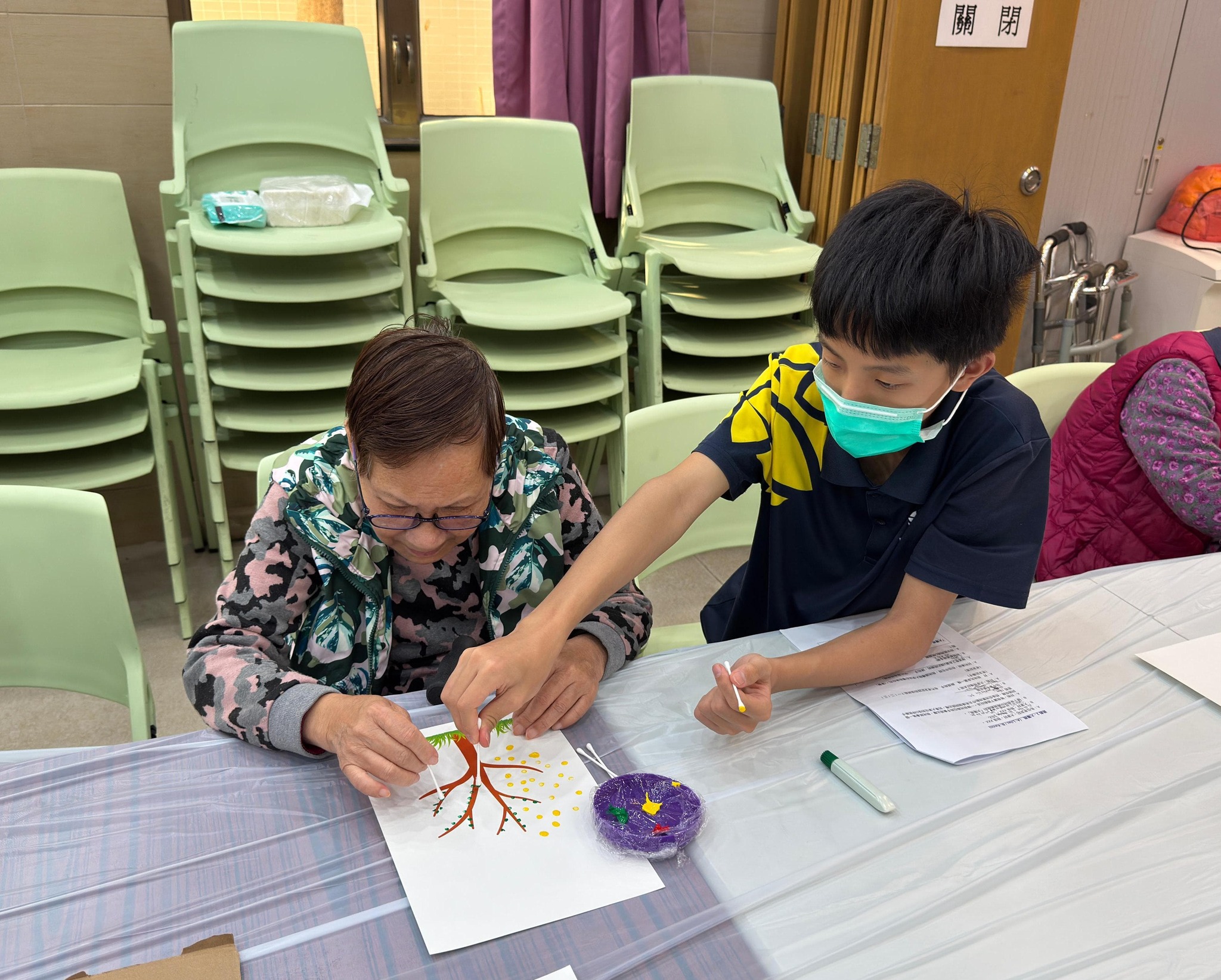 本院於上星期三與弘立書院合作舉辦一個有助跨代共融的活動,是次鳴謝弘立書院的初中學生義工用心預備並與長輩大玩不同的活動,首先與長輩玩音樂運球遊戲,並與長輩進行問答環節接着,學生與長輩製作棉籤畫,長輩拿着棉花棒挑選喜愛的顏色,在印有樹幹的畫紙上一點一點的畫上樹葉和花兒,每位長輩的畫作都各具特色,充滿創意 活動過程中,不但可刺激長輩的手眼協調、肢體能力及創作能力????,長輩更可與學生一起享受遊玩的樂趣,加強彼此的互動及交流,促進長幼共融最後,學生向每位長輩送上親手準備的小禮物,長輩接過禮物後都開心無比