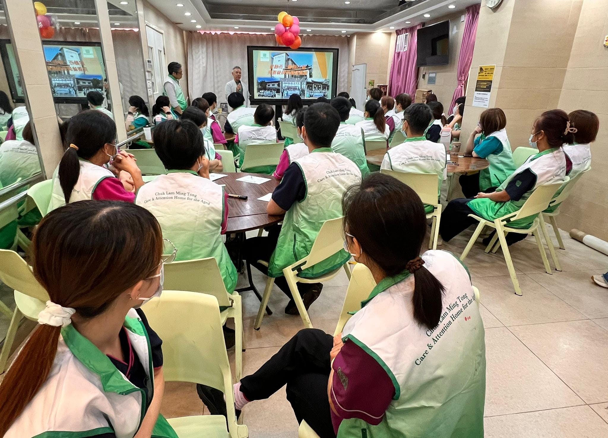 每年本院會就過去一年的照顧服務進行反思、檢討及規劃 最近院舍職員就聚首一堂,除了玩小遊戲外,各部門回顧過去一年的服務成果,職員亦積極反思所推行的照顧服務,探討長輩和職員所遇到的困難及需要同時,職員大膽提出不同建議,為來年晚晴照顧目標做更妥善的準備,以保持及提升長輩的晚年生活質素 本院會持續突破框框、與時俱進、迎難而上、回應長輩需要