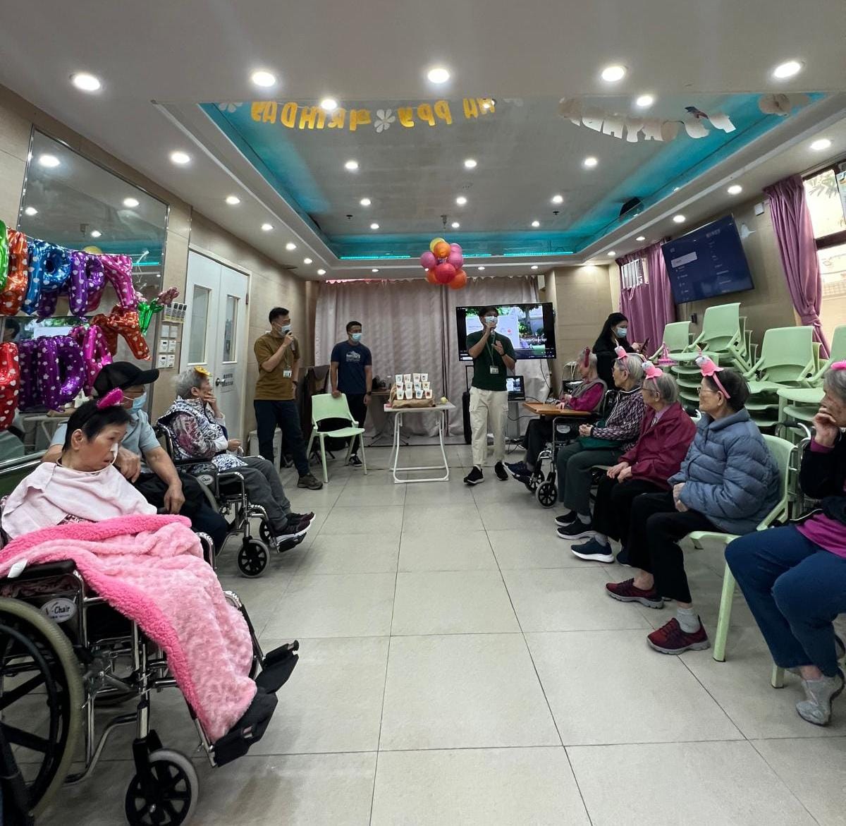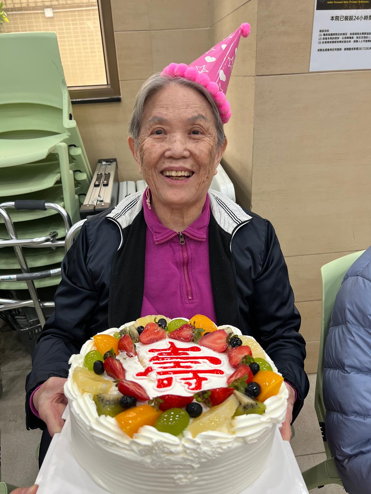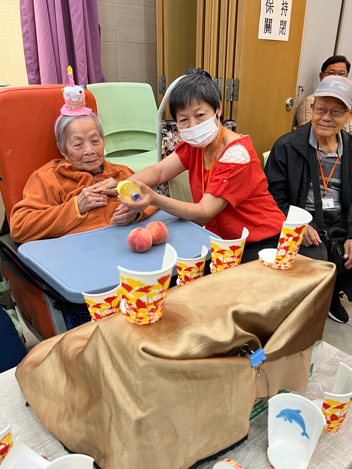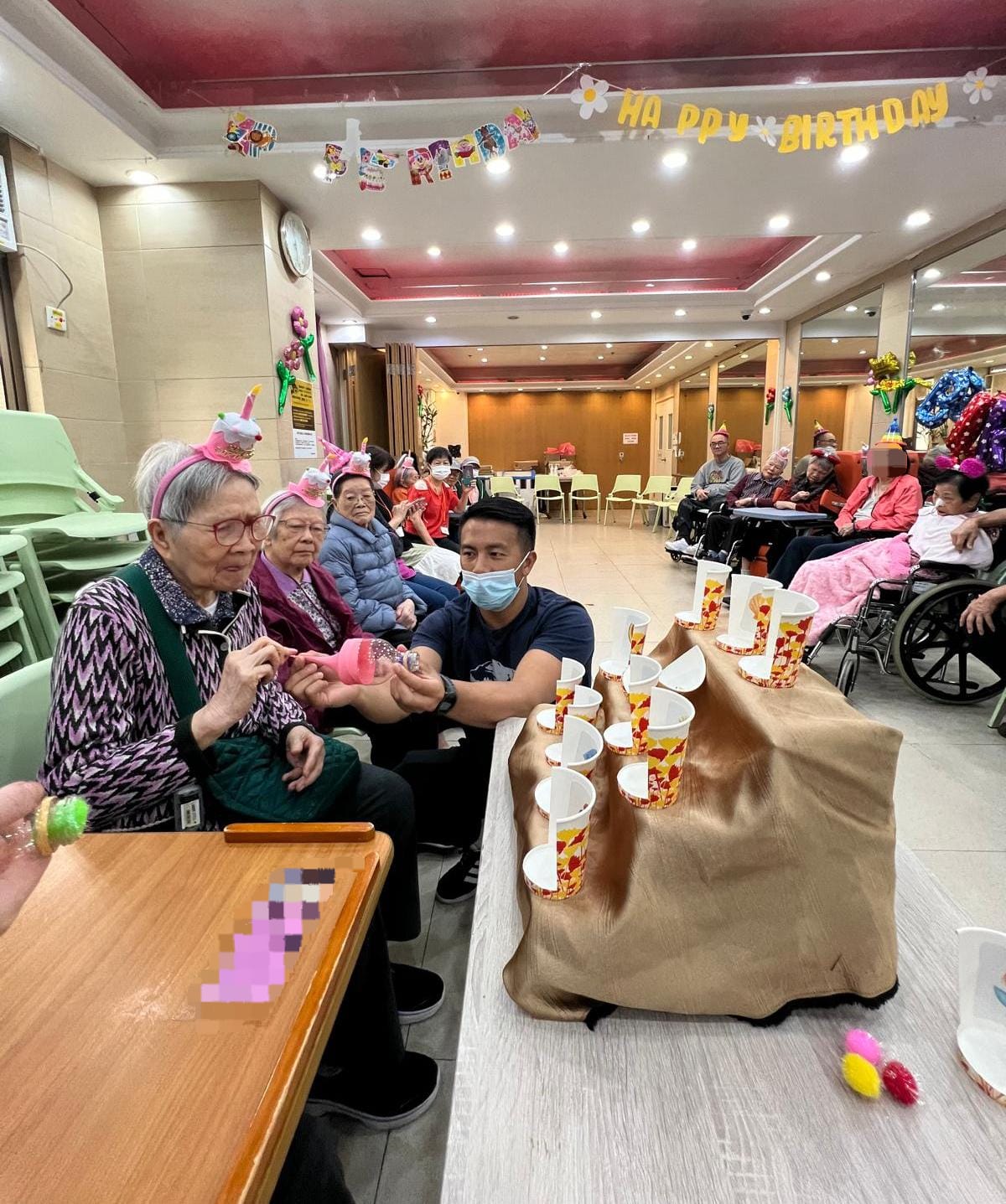 恭祝你福壽與天齊,慶賀你生辰快樂 本院每月都會為長輩舉辦農曆生日會,是次生日會特別鳴謝管理委員會委會一同參與,並送上心意祝福 我們邀請長輩拿起特製膠樽化身成神射手,長輩先將顏色球放在膠樽瓶口,再用手拉動特製膠樽,顏色球隨即向着印有不同圖案的紙杯發射,家人和職員亦在旁為長輩打打氣 我們希望藉此訓練長輩的手眼協調、反應力及認知能力,同時鼓勵長輩與他人交流,個個都玩到樂而忘返