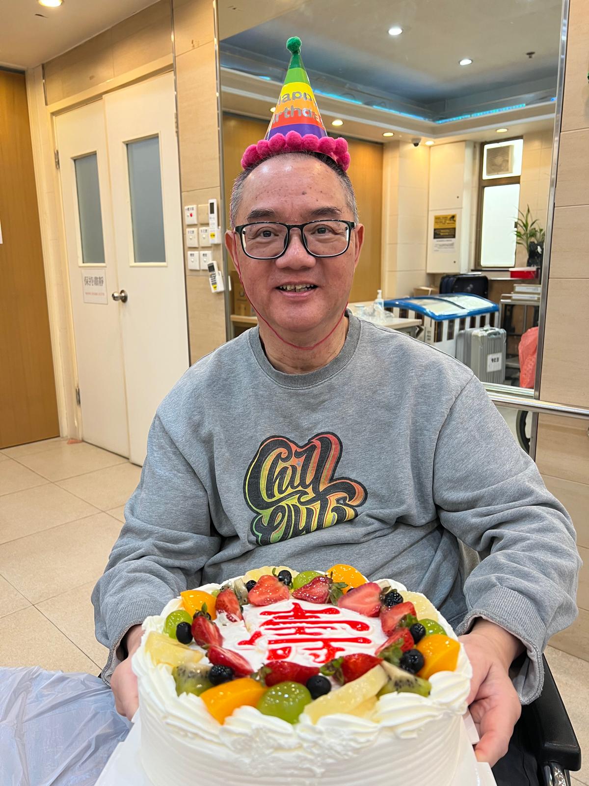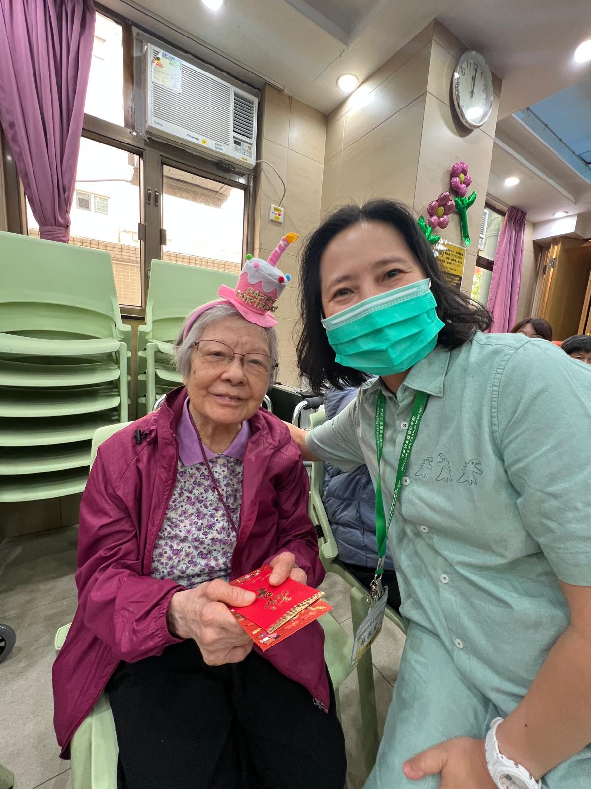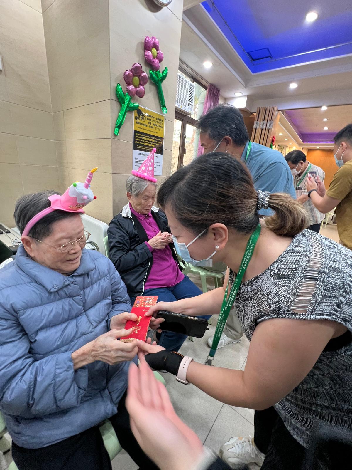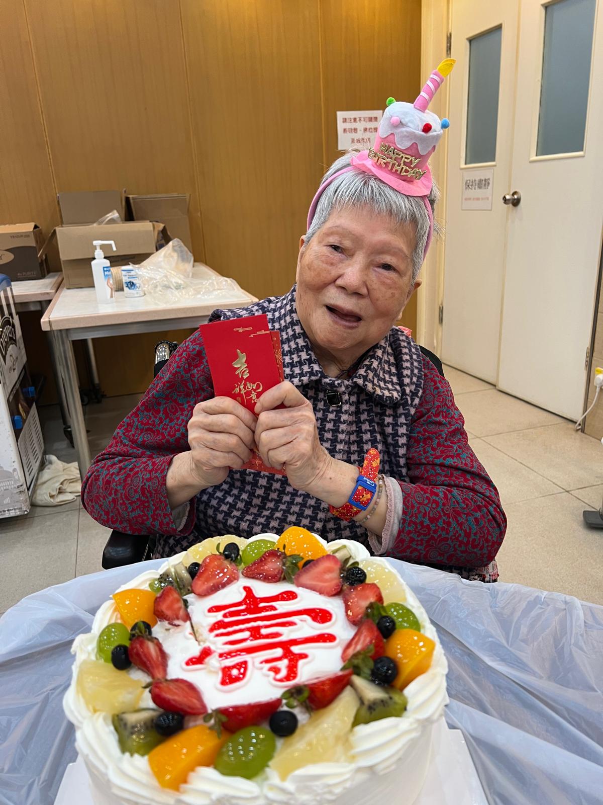 恭祝你福壽與天齊,慶賀你生辰快樂 本院每月都會為長輩舉辦農曆生日會,是次生日會特別鳴謝管理委員會委會一同參與,並送上心意祝福 我們邀請長輩拿起特製膠樽化身成神射手,長輩先將顏色球放在膠樽瓶口,再用手拉動特製膠樽,顏色球隨即向着印有不同圖案的紙杯發射,家人和職員亦在旁為長輩打打氣 我們希望藉此訓練長輩的手眼協調、反應力及認知能力,同時鼓勵長輩與他人交流,個個都玩到樂而忘返