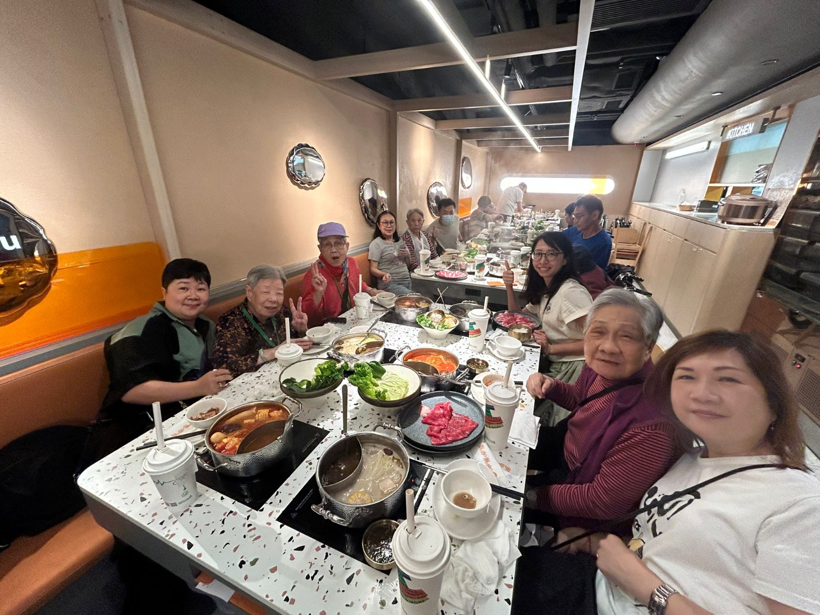 竹林外遊樂本院除了與長輩到訪不同的景點外,我們亦與長輩品嚐不同的特色美食是次我們與長輩到荃灣齊齊嘆台式火鍋,長輩可自行選擇心儀的套餐、湯底及調製火鍋醬料,長輩看到一碟又一碟的雪花肥牛及新鮮蔬菜盤送到桌上,便急不及待地將食材放進鍋裡長輩不但食到無停手,還可與家人談天說地,大滿足呀